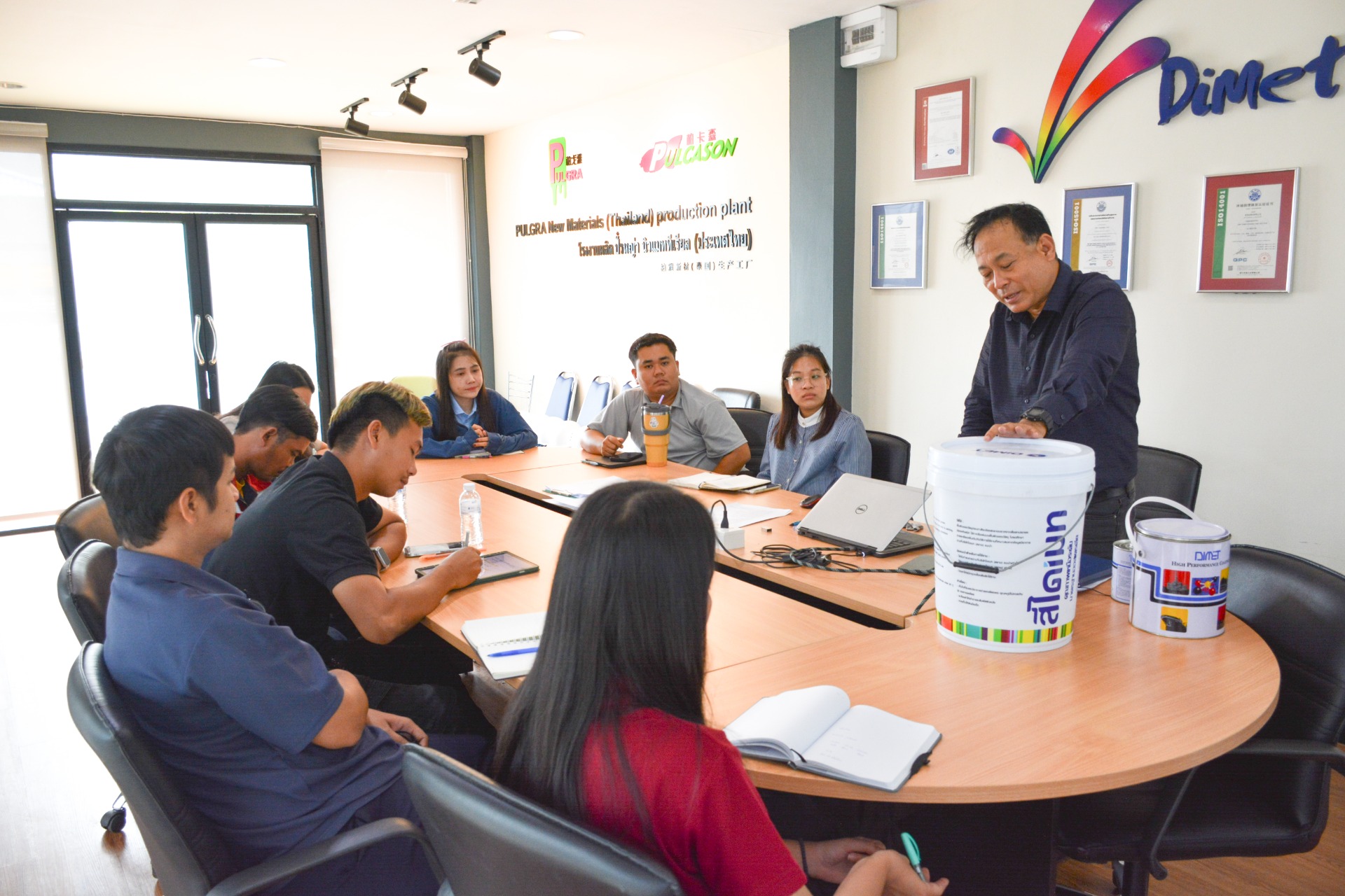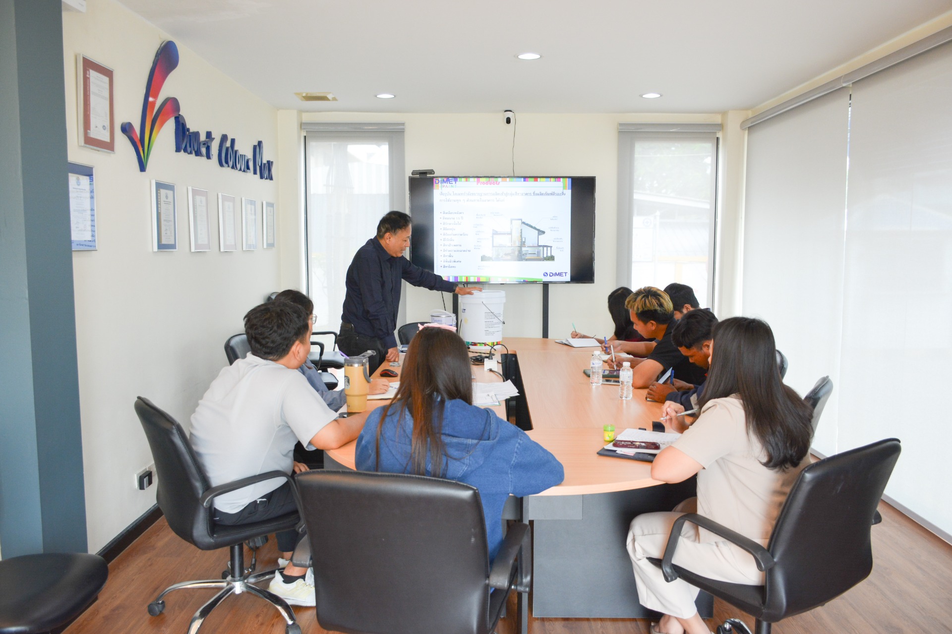 Dimet Company organized a training course to increase knowledge and understanding for interested employees. The training topic was to enhance knowledge about basic colors. The participants received a lecture by a professional speaker to make them aware of the company's products and the use of paint for building problems.